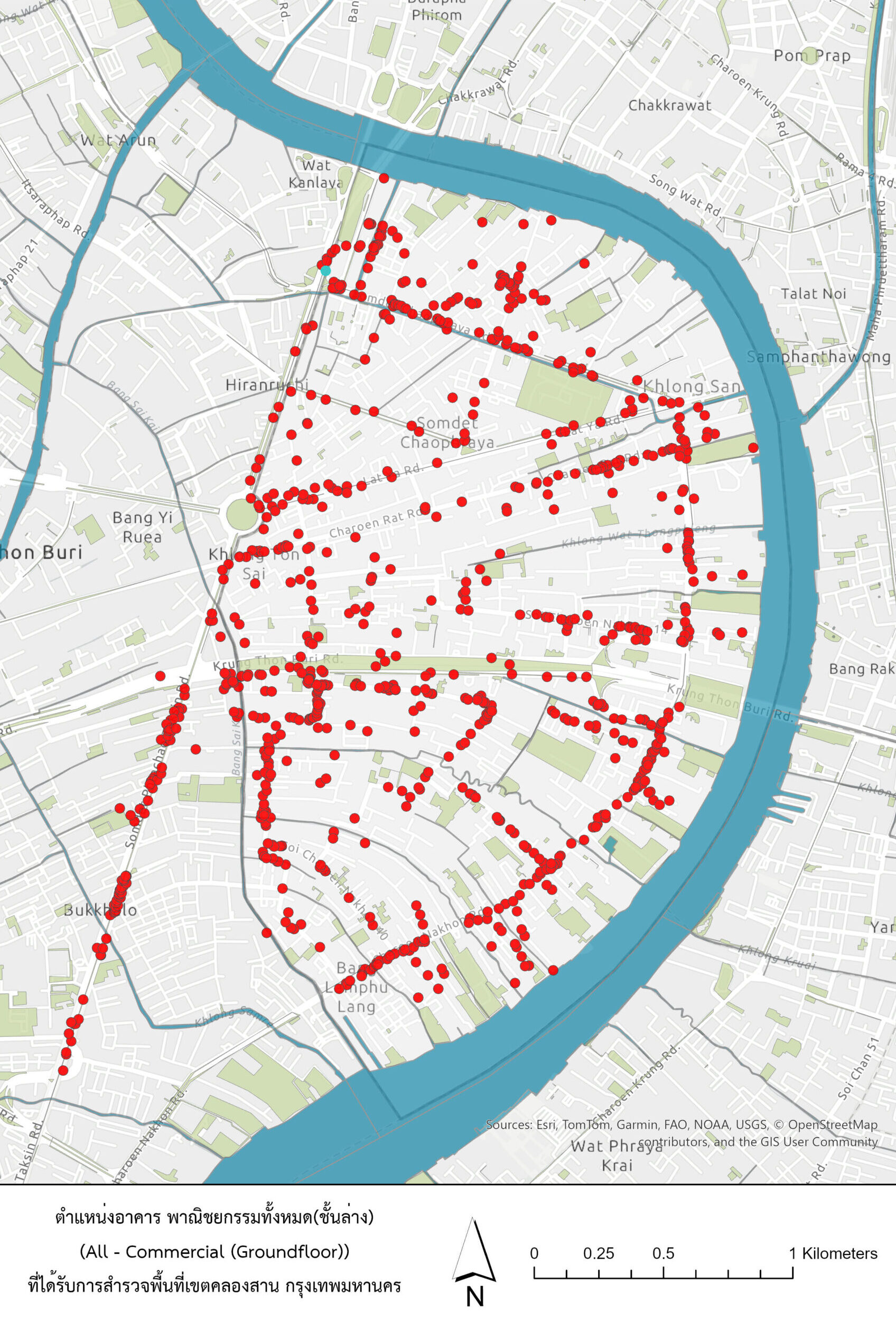 พื้นที่ค้าขาย (จุดสีฟ้า)